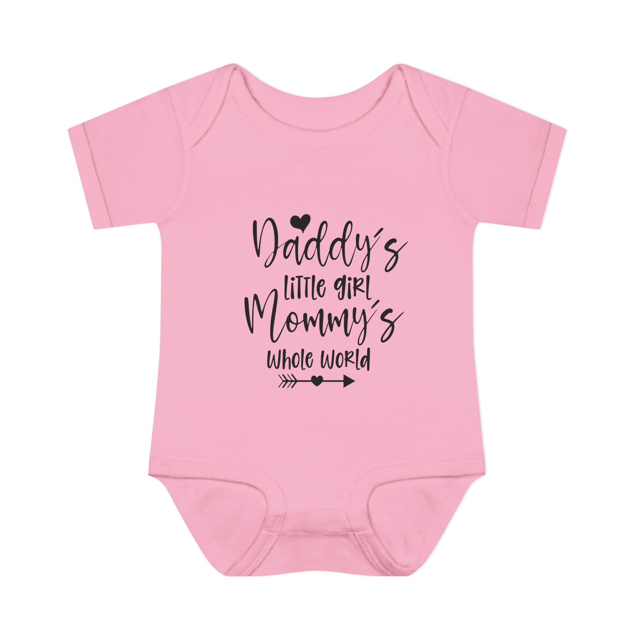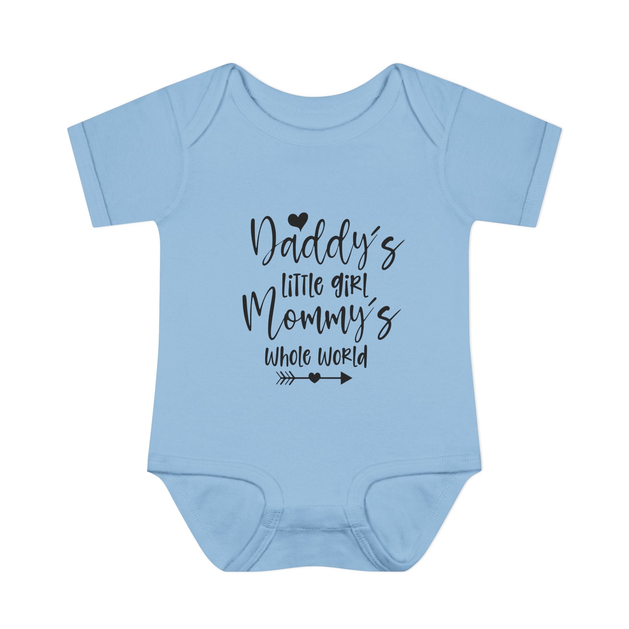 Celebrate the special bond between parents and their little one with our adorable “Daddy’s Little Girl, Mommy’s Whole World” Infant Onesie. This sweet and heartfelt design captures the love, joy, and deep connection that comes with welcoming a beautiful baby girl into the family.