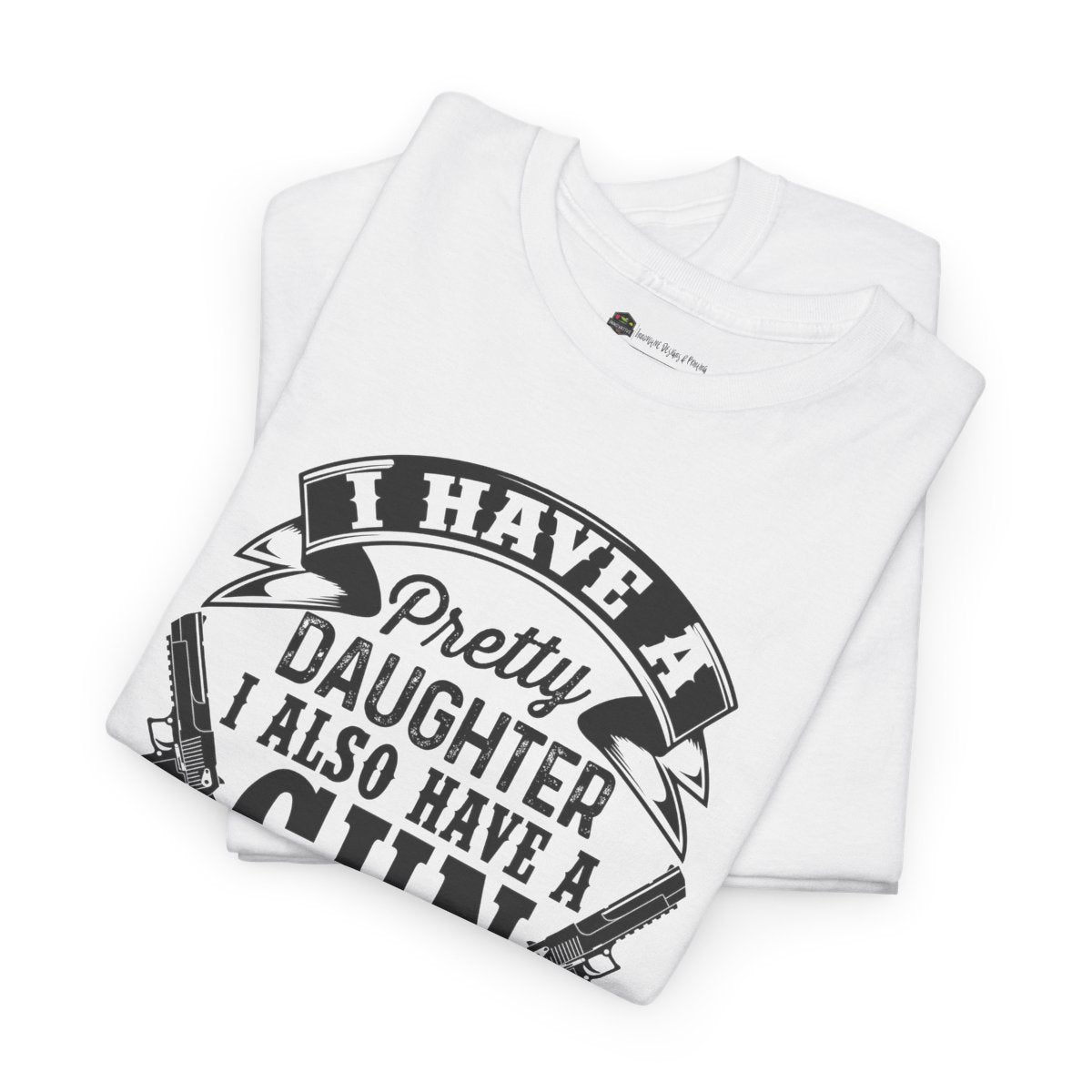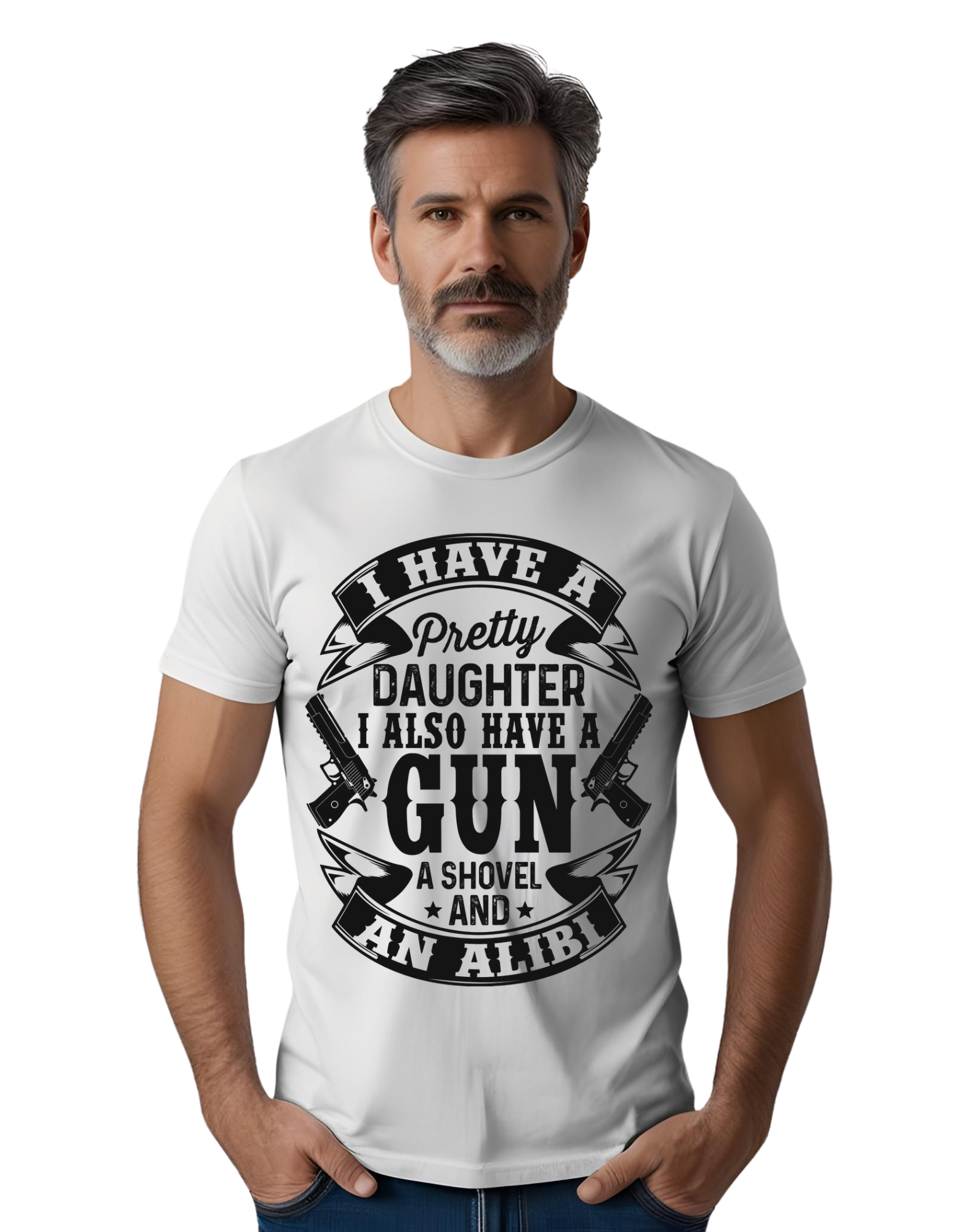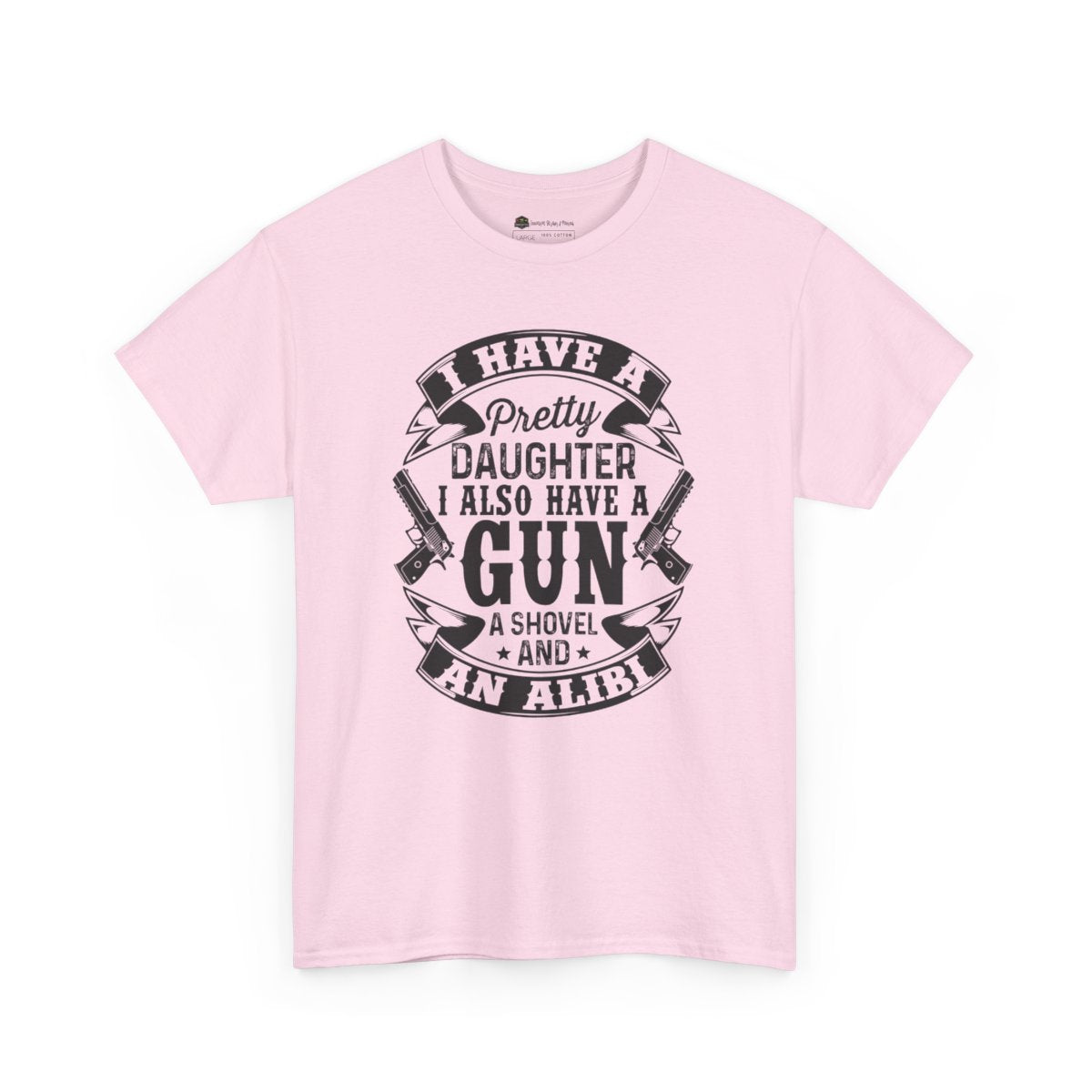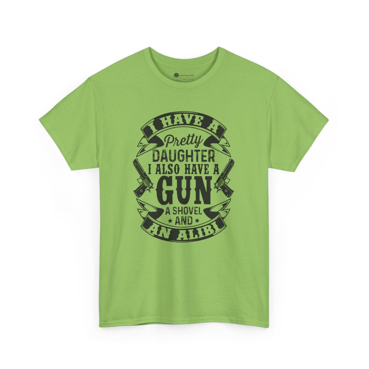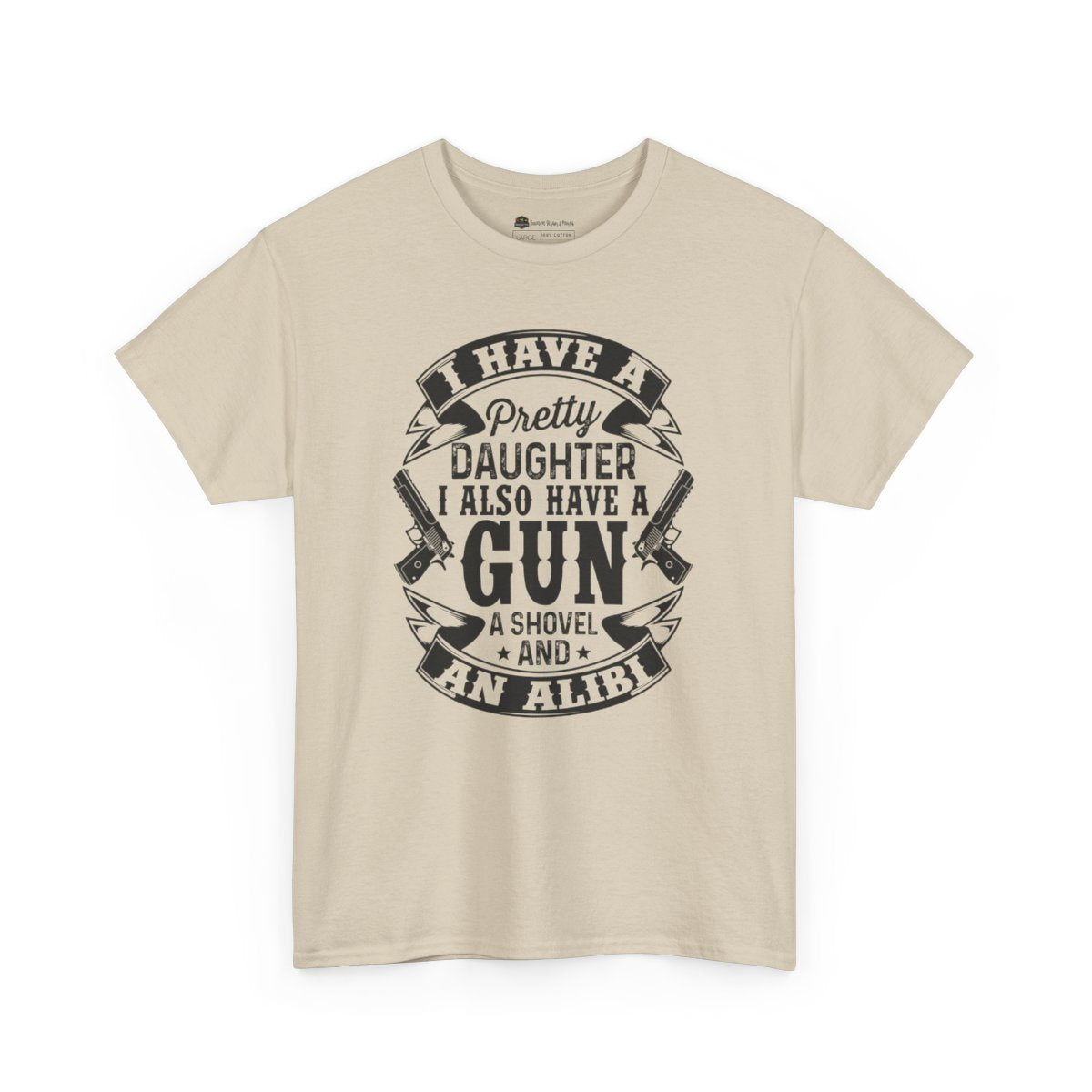 "I Have a Pretty Daughter... I Also Have a Gun, a Shovel, and an Alibi" - Adult Unisex Heavy Cotton T-Shirt