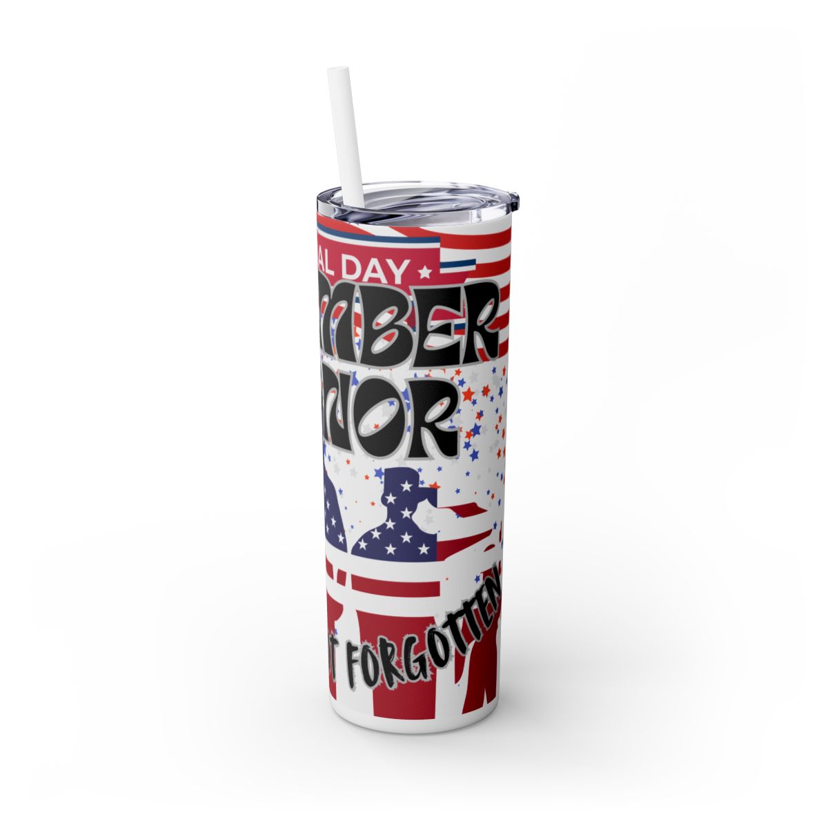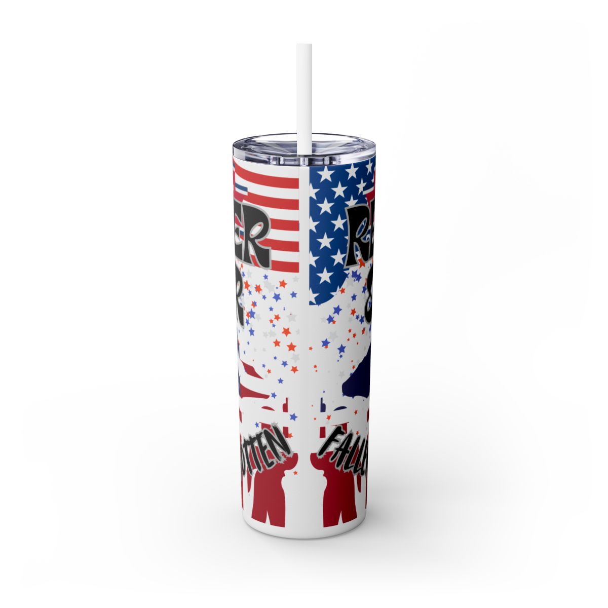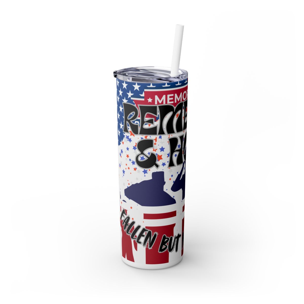 Pay tribute to our heroes with this beautifully designed 20oz skinny tumbler honoring those who gave all. Featuring the powerful message “Remember & Honor – Fallen But Not Forgotten,” this tumbler is a heartfelt way to show your respect and gratitude for the brave men and women who served our country.